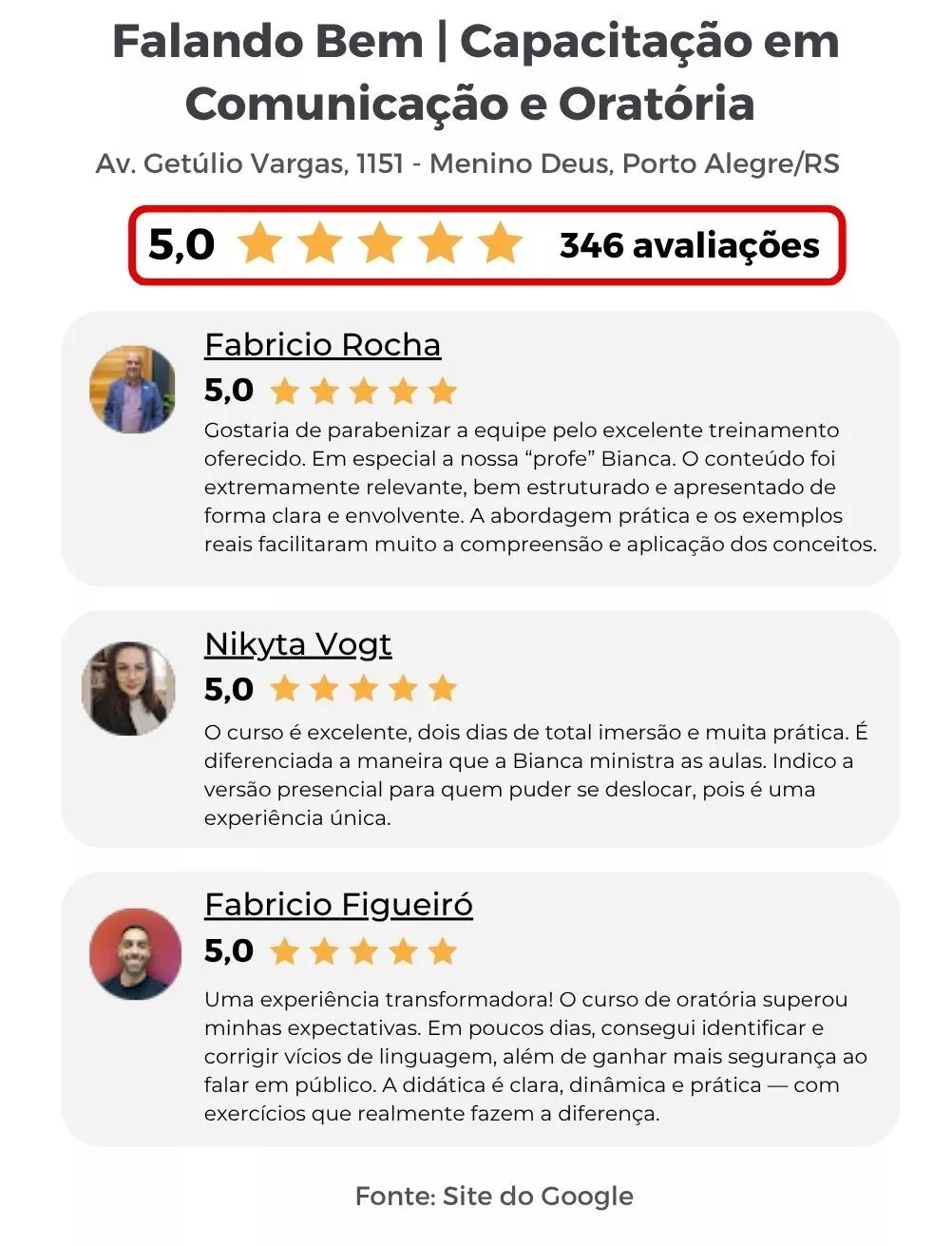 A Falando Bem é a escola de comunicação e oratória com maior número de avaliações positivas!